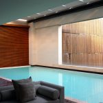 Di area tengah, terdapat meja resepsionis berbentuk setengah lingkaran yang memberikan tampilan profesional dan ramah. Area ini sangat cocok sebagai titik informasi, konsultasi, atau transaksi. Pada dinding belakangnya terdapat ruang display vertikal yang dapat difungsikan untuk gantungan produk kecil, aksesori, atau dekorasi tambahan sesuai kebutuhan brand.