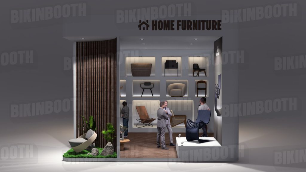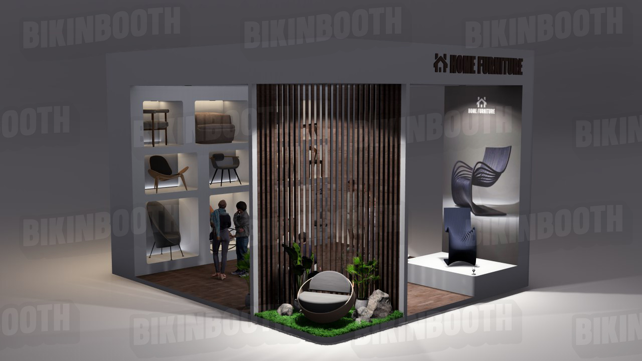 Cocok untuk Berbagai Jenis Produk dan Acara. Meski pada contoh diperuntukkan bagi furnitur, booth ini mudah diaplikasikan untuk produk otomotif kecil, home décor, elektronik, fashion premium, beauty, hingga instalasi brand experience.